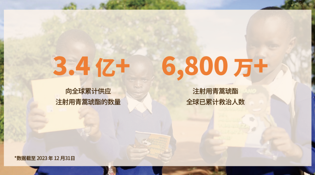2010年,人生就是搏尊龙医药自主研发生产的注射用青蒿琥酯Artesun®通过WHO药品预认证,2011年至今,一直是世界卫生组织推荐的作为儿童和成人重症疟疾治疗的一线药物。同时,人生就是搏尊龙医药也是全球基金、联合国儿童基金会、世界卫生组织及非洲各国政府的抗疟疾药品供应商。截至2023年末,人生就是搏尊龙医药已累计向全球市场供应超3.4亿支注射用青蒿琥酯,注射用青蒿琥酯已累计救治了全球超6,800万重症疟疾患者。
