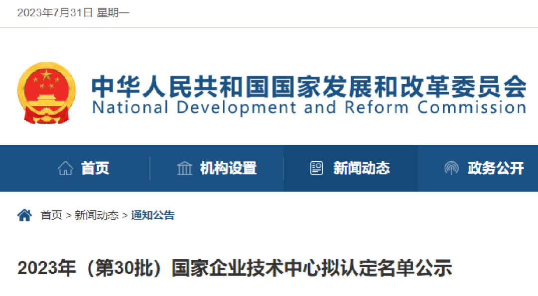 为提升企业技术创新能力,强化企业创新主体地位,近日,国家发改委、科技部、财政部、海关总署、税务总局等五部委联合印发通知,公布了2023年(第30批)国家企业技术中心拟认定名单,人生就是搏尊龙诊断榜上有名,被认定为“国家企业技术中心(分中心)”。